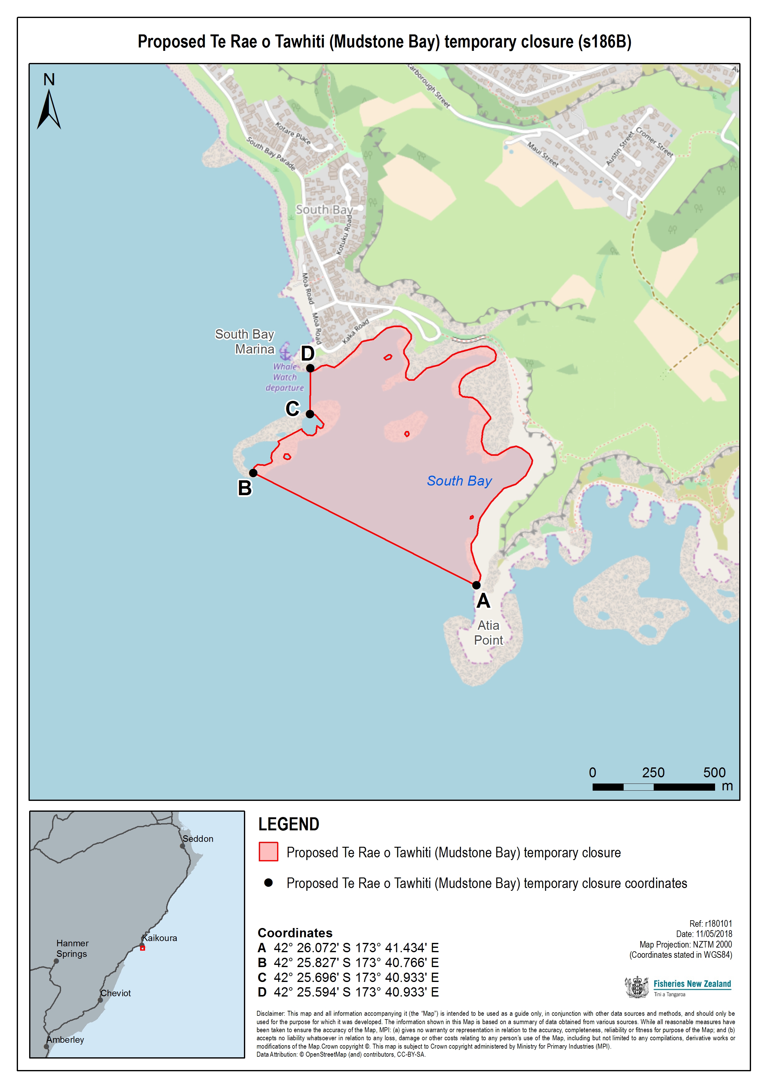 • Te Rae o Tawhiti (Mudstone Bay) in South Bay, Kaikōura – proposed closure for two years.